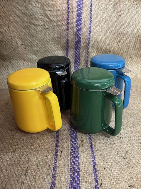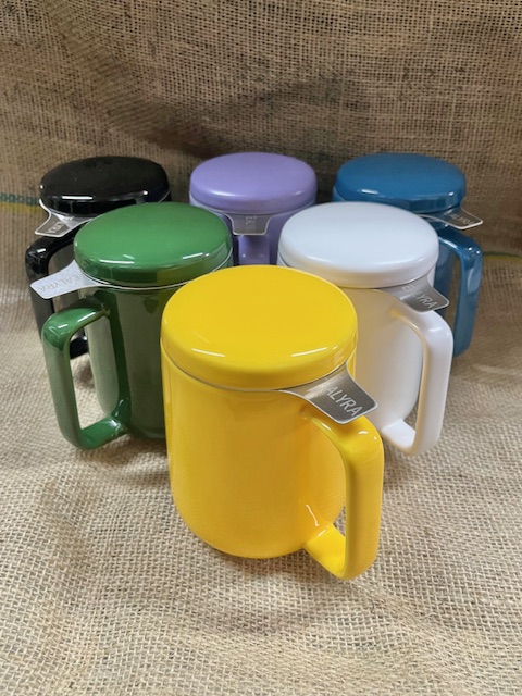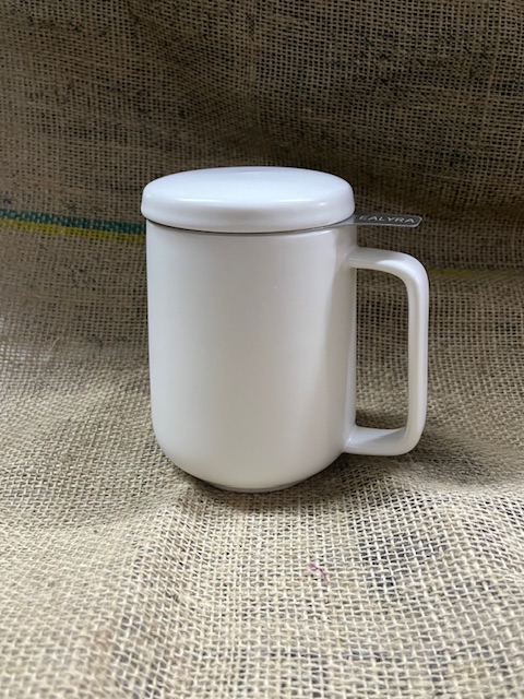 Perfect mug for office or home use with lid that can be used as a resting tray for tea strainer.