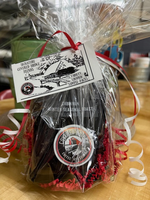 Looking for the perfect holiday gift for friends and family? The Covered Bridge Collection is a gift wrapped collection of six individual one pot sample packs. Each sample pack features one of our signature covered bridge blends. Each Covered Bridge Coffee Collection contains samples of medium and dark roasts , ground to an auto drip grind.